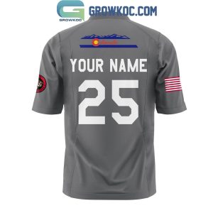 Turning to the back, the jersey offers a personalized touch with a "YOUR NAME" placeholder above the large "25," allowing fans to truly make it their own. Highlighting the Academy's Colorado roots, a vibrant mountain and sun design, reminiscent of the state flag, graces the upper back, connecting the team to its stunning Rocky Mountain home. An additional American flag patch on the right sleeve mirrors the front, reinforcing national pride.