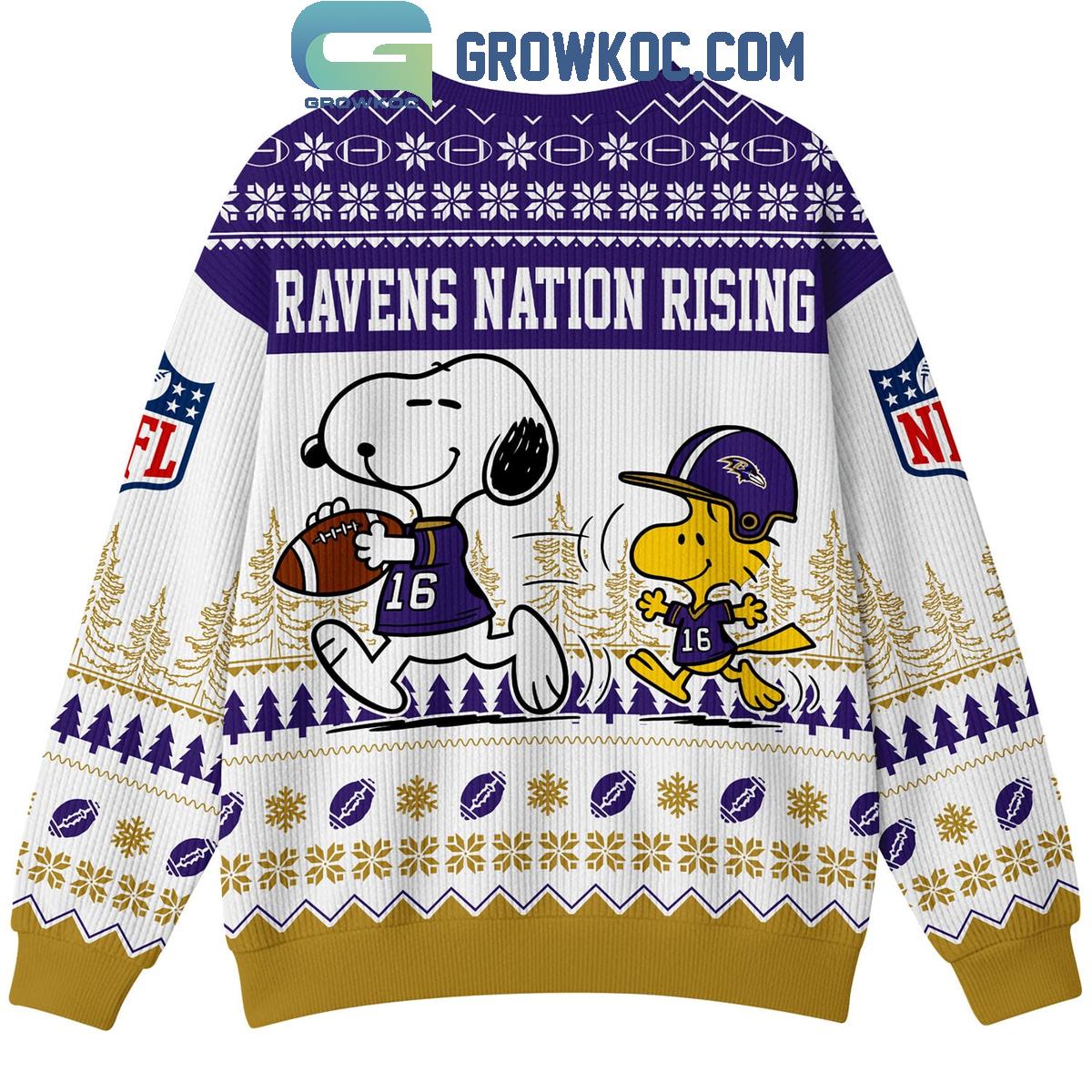 Baltimore Ravens Snoopy Peanuts Ravens Nation Rising Ugly Sweater