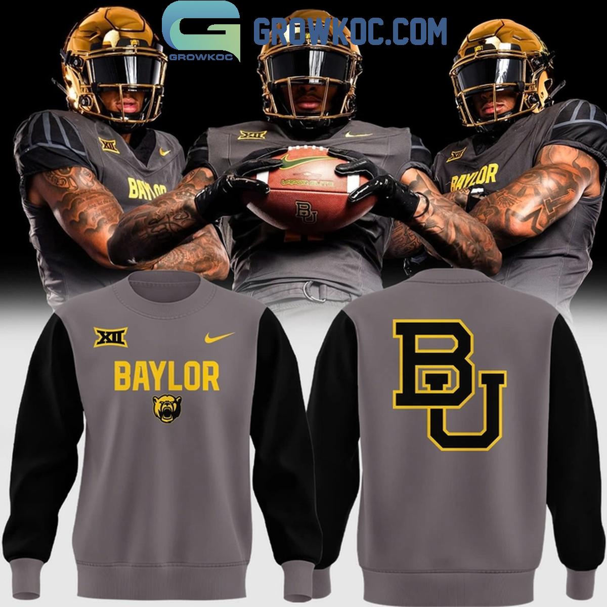 Elevate your fan gear with the striking Baylor Bears New Gold Chrome Uniform Hoodie Shirt, a piece that directly channels the iconic on-field look of the Bears' football program. Drawing inspiration from their distinctive gold chrome helmets and modern grey uniforms, this hoodie allows you to wear your collegiate pride with undeniable style and authenticity.