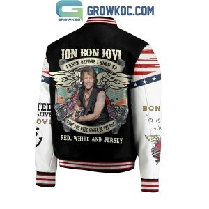 Turn heads as you walk away, showcasing the jacket's vibrant back design. Here, a dynamic portrait of Jon Bon Jovi himself takes center stage, framed by evocative lyrics like "I Knew Before I Knew Ya" and "That You Were Gonna Be The One." These carefully selected lines resonate deeply with fans, celebrating the band's rich storytelling and emotional depth.