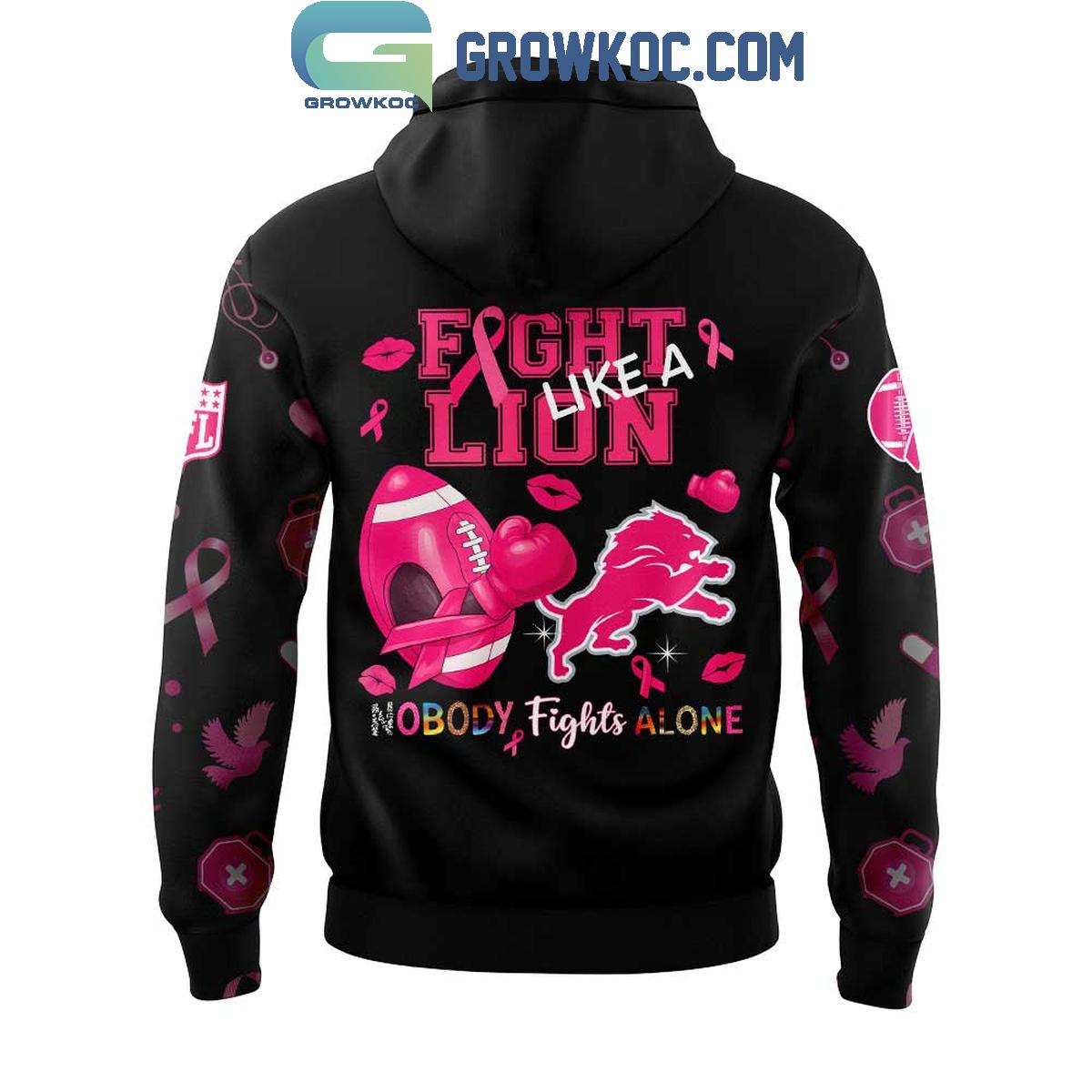 Detroit Lions Nobody Fights Alone Breast Cancer Hoodie Shirt