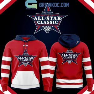 Crafted from high-quality, soft fleece fabric, the hoodie offers warmth, durability, and a smooth, comfortable fit suitable for year-round wear. The front features the bold All-Star Classic 2026 logo prominently displayed on a large star emblem, symbolizing excellence and competition at the highest level. Red, white, and navy striping across the sleeves and hem create a classic hockey-inspired aesthetic, while the contrasting white pocket adds a crisp visual balance.