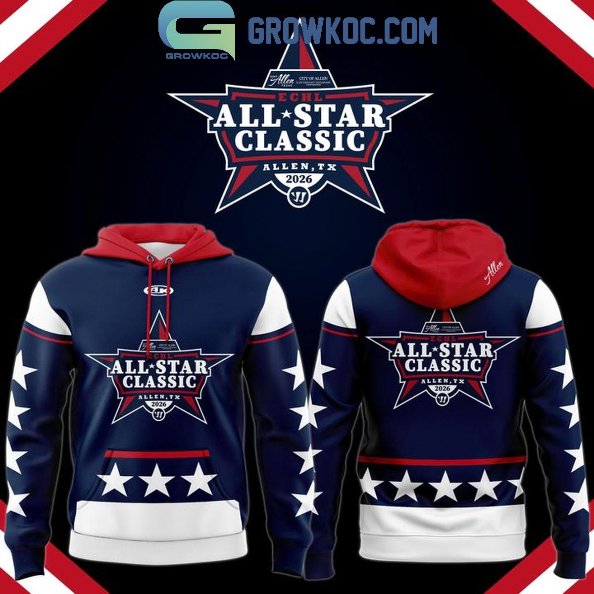 Honor one of the most exciting events in professional hockey with the ECHL All-Star Classic 2026 Hoodie Shirt. Designed for passionate fans and collectors alike, this hoodie captures the energy, prestige, and star-studded spirit of the 2026 All-Star Game held in Allen, Texas. Whether you’re attending the event, watching from home, or simply want a standout piece of memorabilia, this hoodie delivers premium comfort and undeniable style.