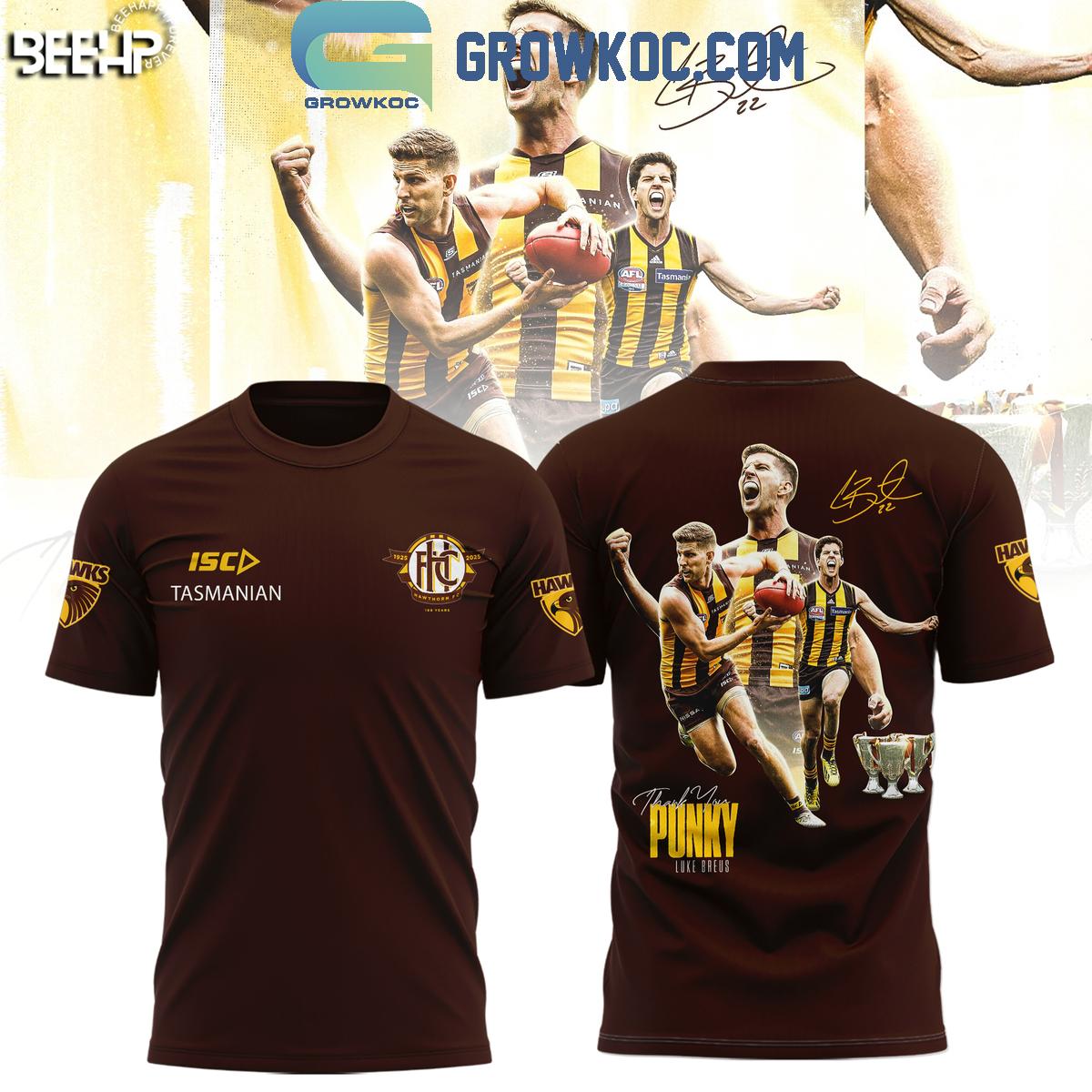 Celebrate a true Hawthorn legend with the official Hawthorn Hawks Thank You Luke Breust Hoodie Shirt. This isn't just fan apparel; it's a wearable tribute to one of the club's most iconic and reliable forwards, Luke Breust, affectionately known as 'Punky', commemorating his incredible contributions to the brown and gold.