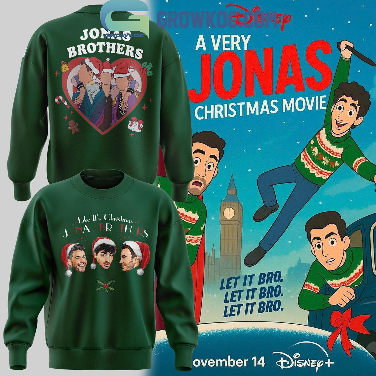 Immerse yourself in the magic of the season and showcase your unwavering fandom with the official Jonas Brothers A Very Jonas Christmas Movie Hoodie Shirt. This vibrant, forest green pullover is an absolute essential for any devoted fan, perfectly capturing the spirit of the highly anticipated Disney+ holiday special. It's more than just apparel; it's a wearable celebration, bringing the unique charm and heartwarming melodies of Nick, Joe, and Kevin directly into your festive wardrobe.