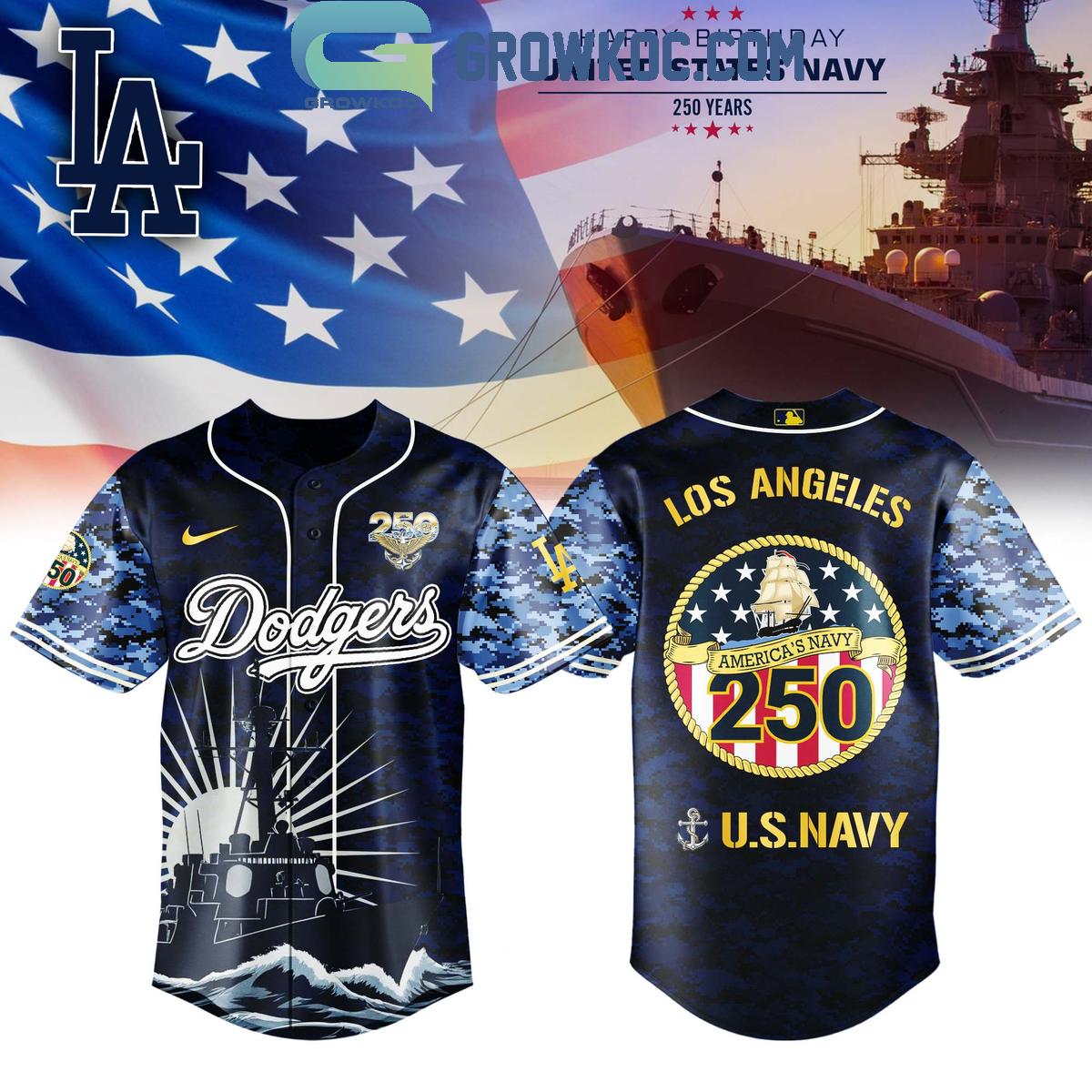 Los Angeles Dodgers Celebration Happy Birthday US Navy 250 Years 2025 Jersey