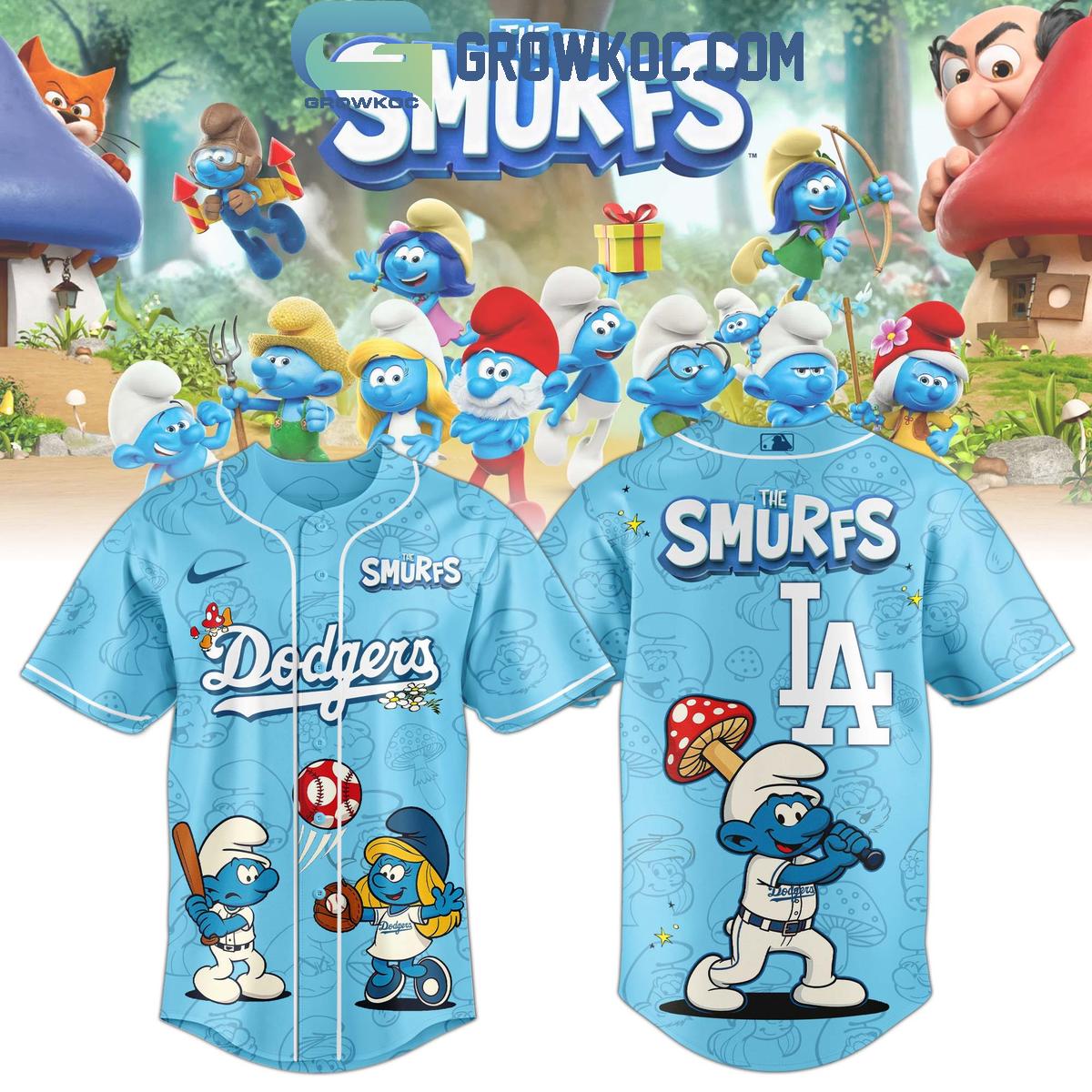 Whether you’re cheering from Dodger Stadium or rewatching your favorite Smurfs episodes, this jersey is a fun and collectible piece for fans of all ages.