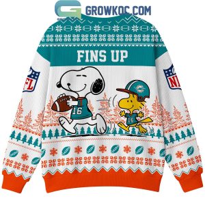 The Miami Dolphins Snoopy Peanuts “Fins Up” Ugly Sweater is the perfect holiday essential for Dolphins fans who want to combine festive cheer, classic cartoon nostalgia, and unmistakable NFL pride. Featuring beloved Peanuts characters Snoopy, Woodstock, and Charlie Brown dressed in Miami Dolphins gear, this sweater proudly showcases the iconic fan chant “Fins Up,” making it a standout choice for the holiday season and game days alike.
