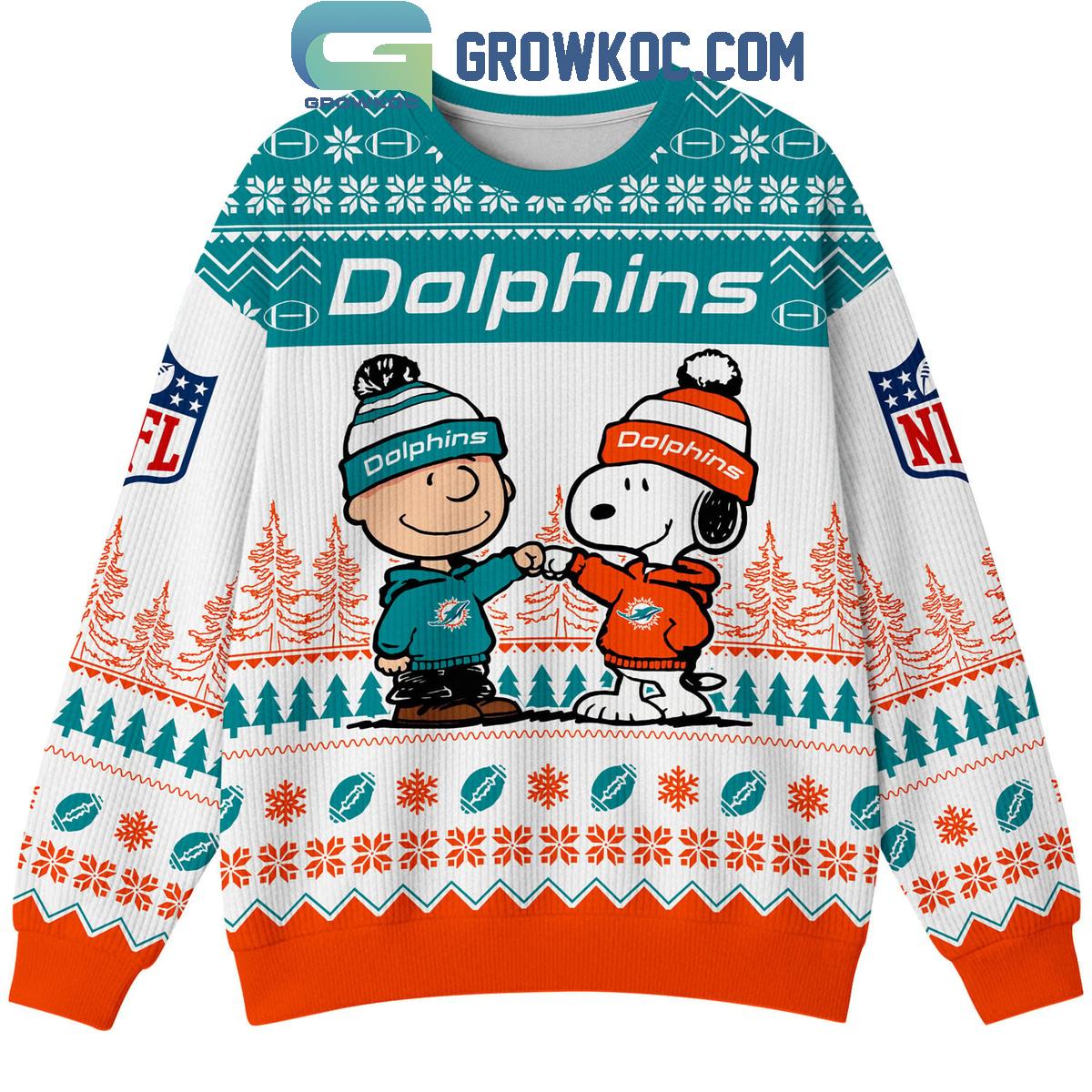 Miami Dolphins Snoopy Peanuts Fins Up Ugly Sweater