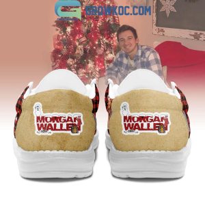 Each shoe features a vibrant red and black buffalo plaid pattern – an enduring symbol of winter warmth and country living. Central to this striking aesthetic is a clear, high-quality image of Morgan Wallen, framed by delicate festive snowflakes. The design is further enhanced by a prominent "Christmas" graphic, boldly featuring a rustic steer skull motif that perfectly encapsulates the artist's rugged appeal. This attention to detail ensures every element resonates with true fans.