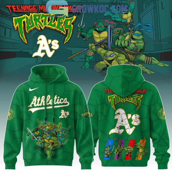 The Oakland Athletics MLB Ninja Turtles 2025 Special Hoodie T-Shirt is a unique and exciting crossover for both baseball fans and Teenage Mutant Ninja Turtles enthusiasts. This limited-edition hoodie combines the classic Oakland Athletics branding with the beloved Teenage Mutant Ninja Turtles, creating a fun, energetic design that is perfect for showing off your fandom.