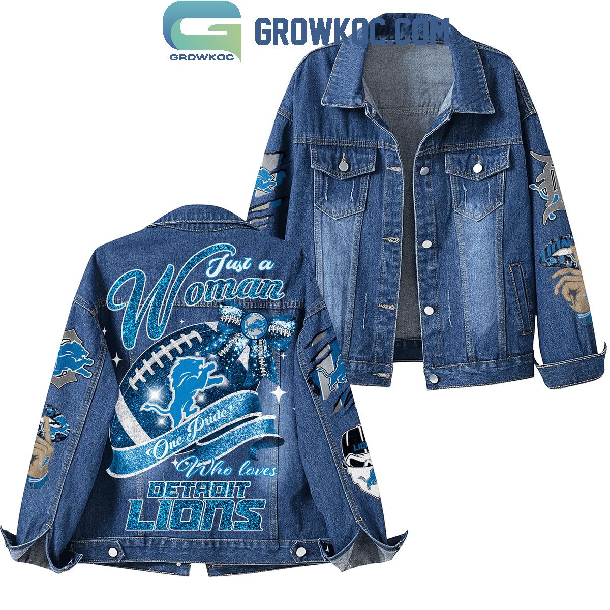 One Pride Just A Woman Who Loves Detroit Lions Denim Jacket