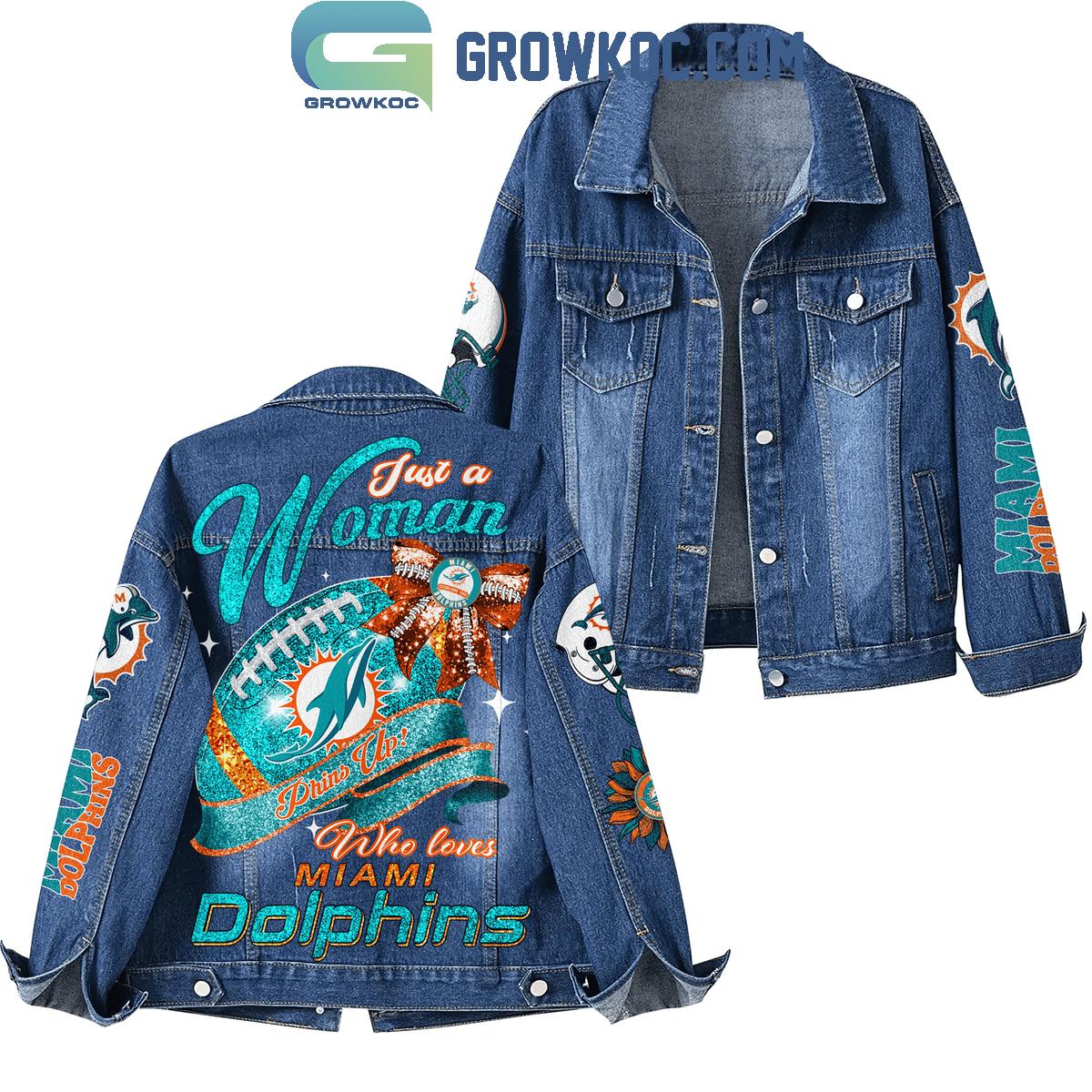 Phins Up Just A Woman Who Loves Miami Dolphins Denim Jacket