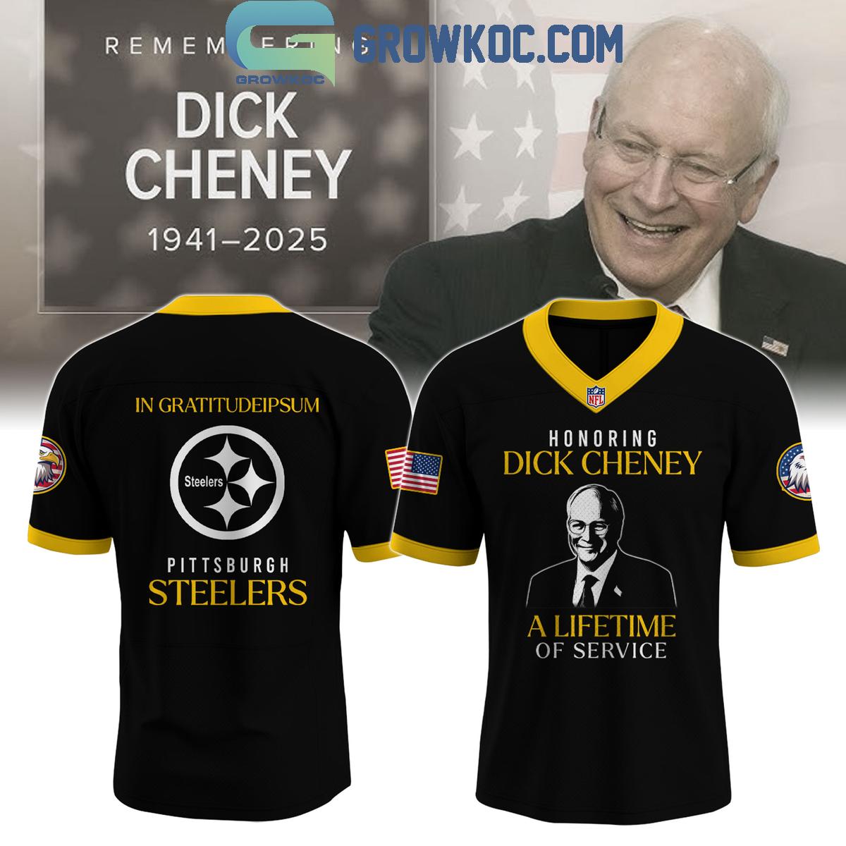 Discover the exceptional Pittsburgh Steelers Honoring Dick Cheney Tribute Football Jersey, a meticulously crafted garment that seamlessly unites American patriotism and unwavering NFL devotion. This unique piece thoughtfully commemorates a lifetime dedicated to public service, presented in the iconic black and gold colors synonymous with Steelers pride.
