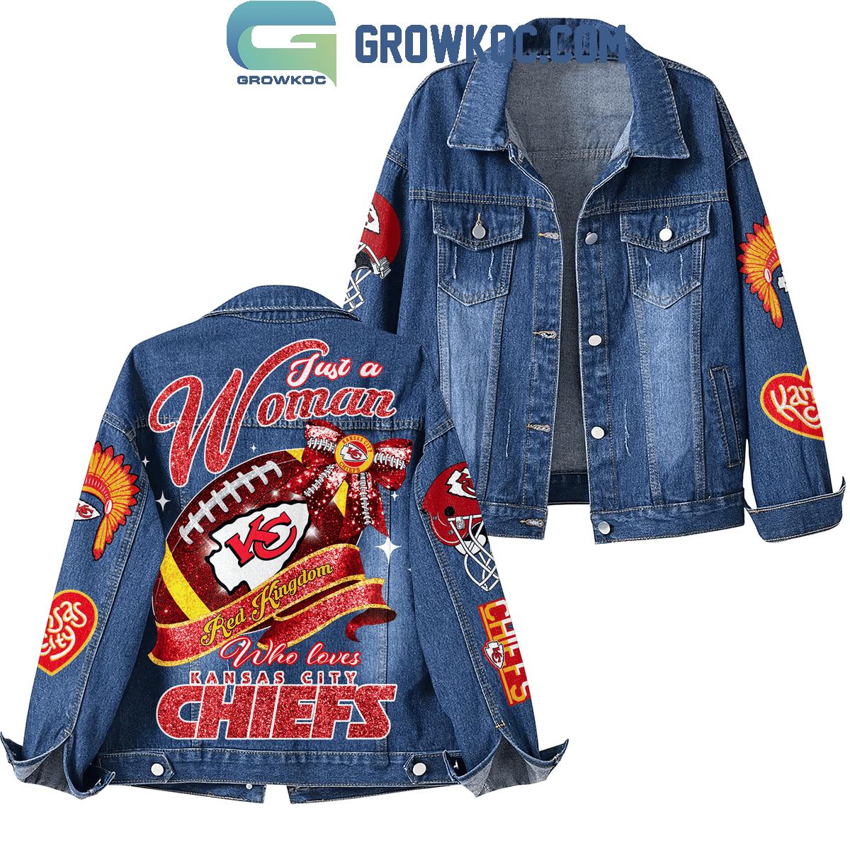 ,Red Kingdom Just A Woman Who Loves Kansas City Chiefs Denim Jacket