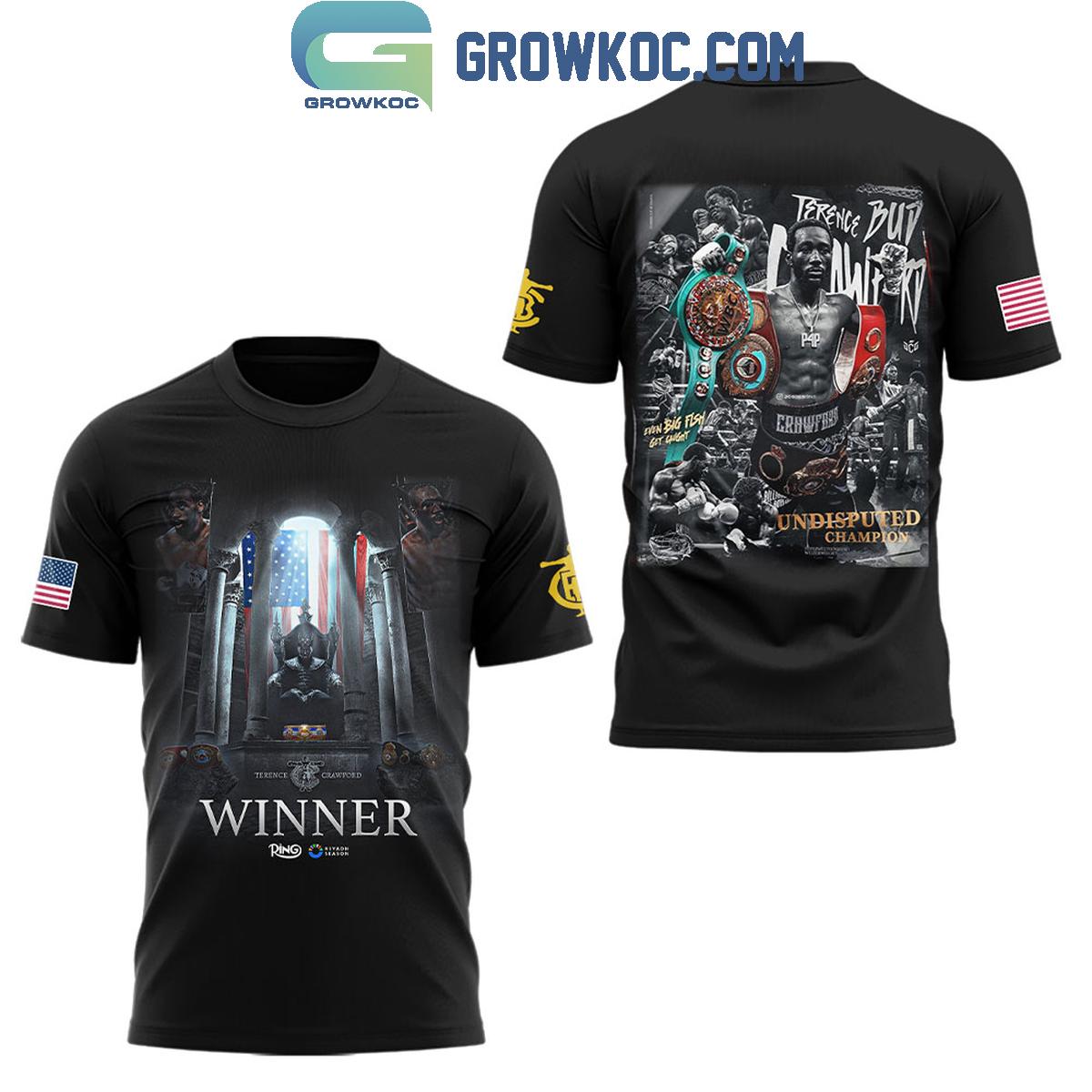 Celebrate the undeniable legacy of one of boxing's true pound-for-pound greats with the Terence Crawford Undisputed Champion Shirt. This essential apparel commemorates "Bud" Crawford's historic ascent to undisputed status, embodying the unparalleled grit, precision, and tactical brilliance that define a modern boxing legend. Owning this shirt is not just a display of fandom; it's an acknowledgment of a fighter who has etched his name into the annals of boxing history through sheer dominance and skill.